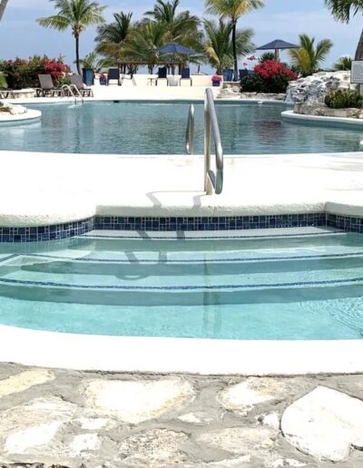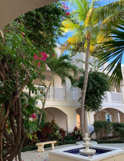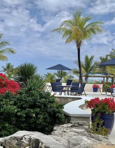 This second floor corner unit has unobstructed views of the beautiful blue ocean, the beach and the pool area. Relax on the balcony with your morning coffee watching the sun rise over the most incredible blue waters. The pool is set in a lush tropical garden surrounded by tall coconut palm trees, perfect for lounging in both the sun and shade if needed. There is a seasonal restaurant on property within a very short walking distance from the unit.