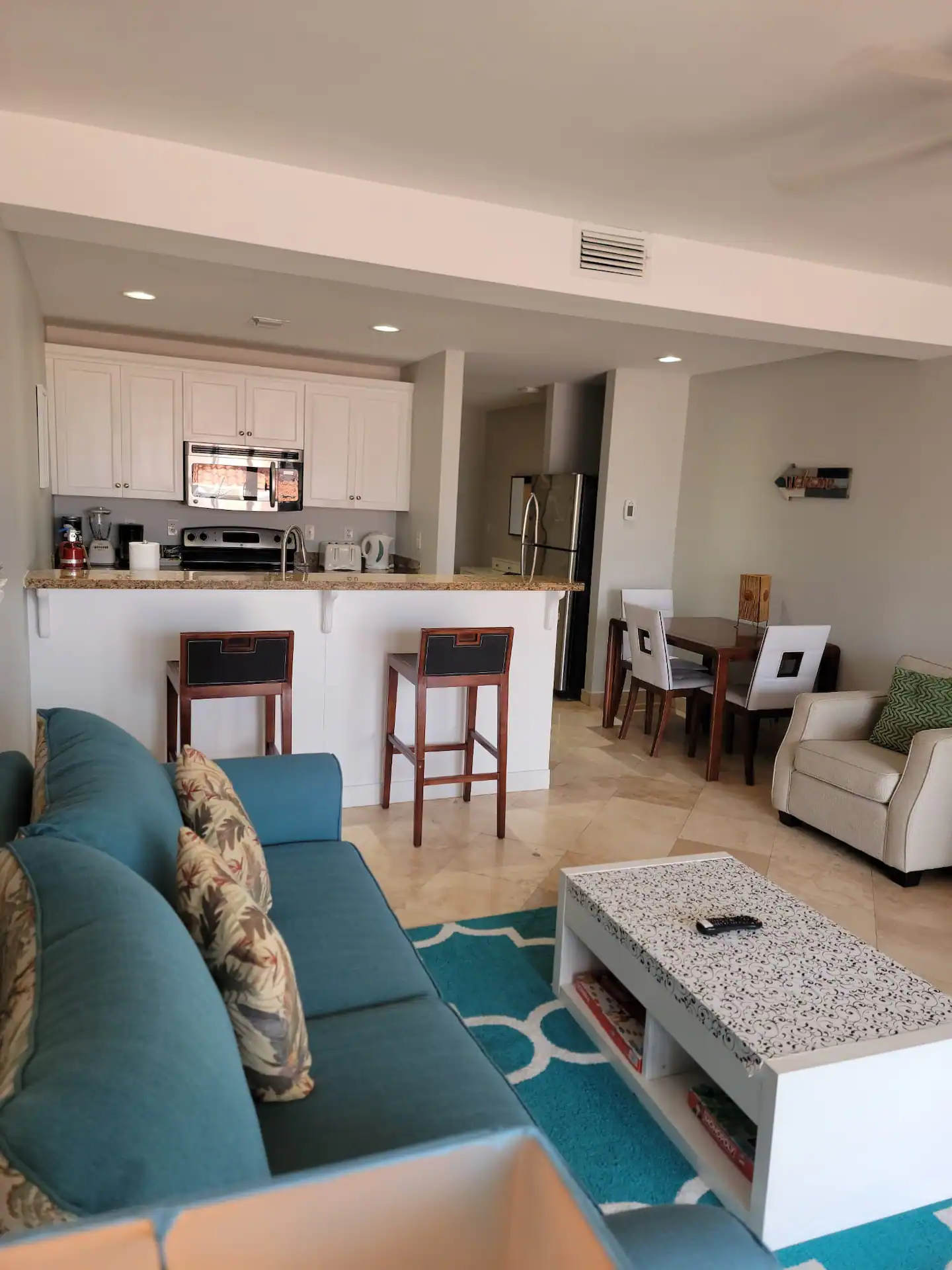 Gated parking, underground covered parking, coffee shop, Ice cream parlor, gym, restaurant all on property. Adult only and family pool areas, hot tub, and more. Central location on island makes it easy to get anywhere you want to be. All new furniture, lighting, wifi, tv’s, games, etc.